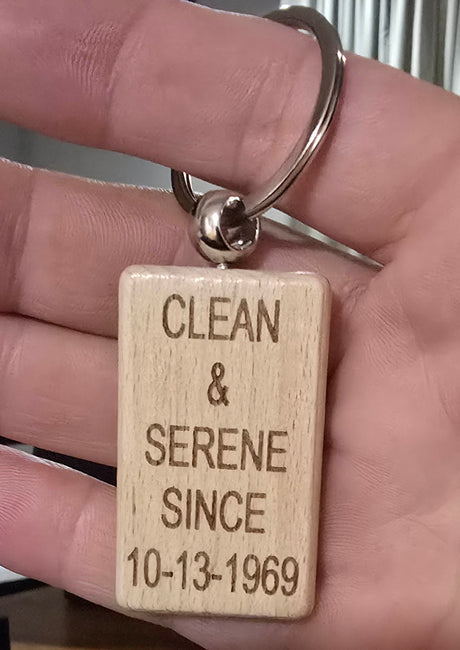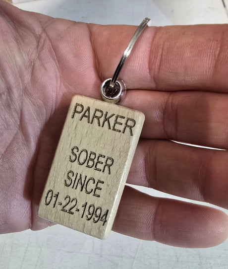 Wooden Sober Date Key Chain