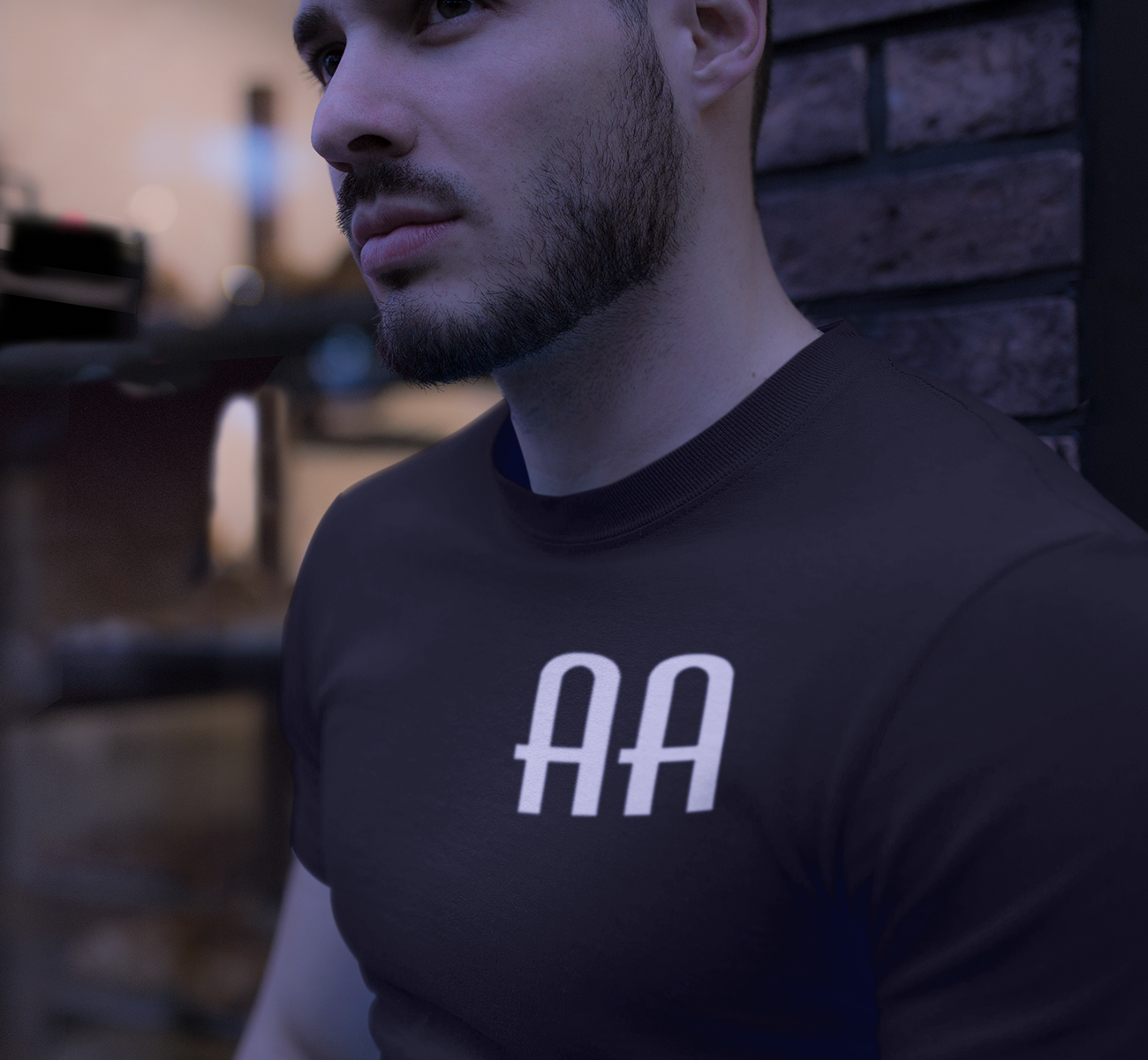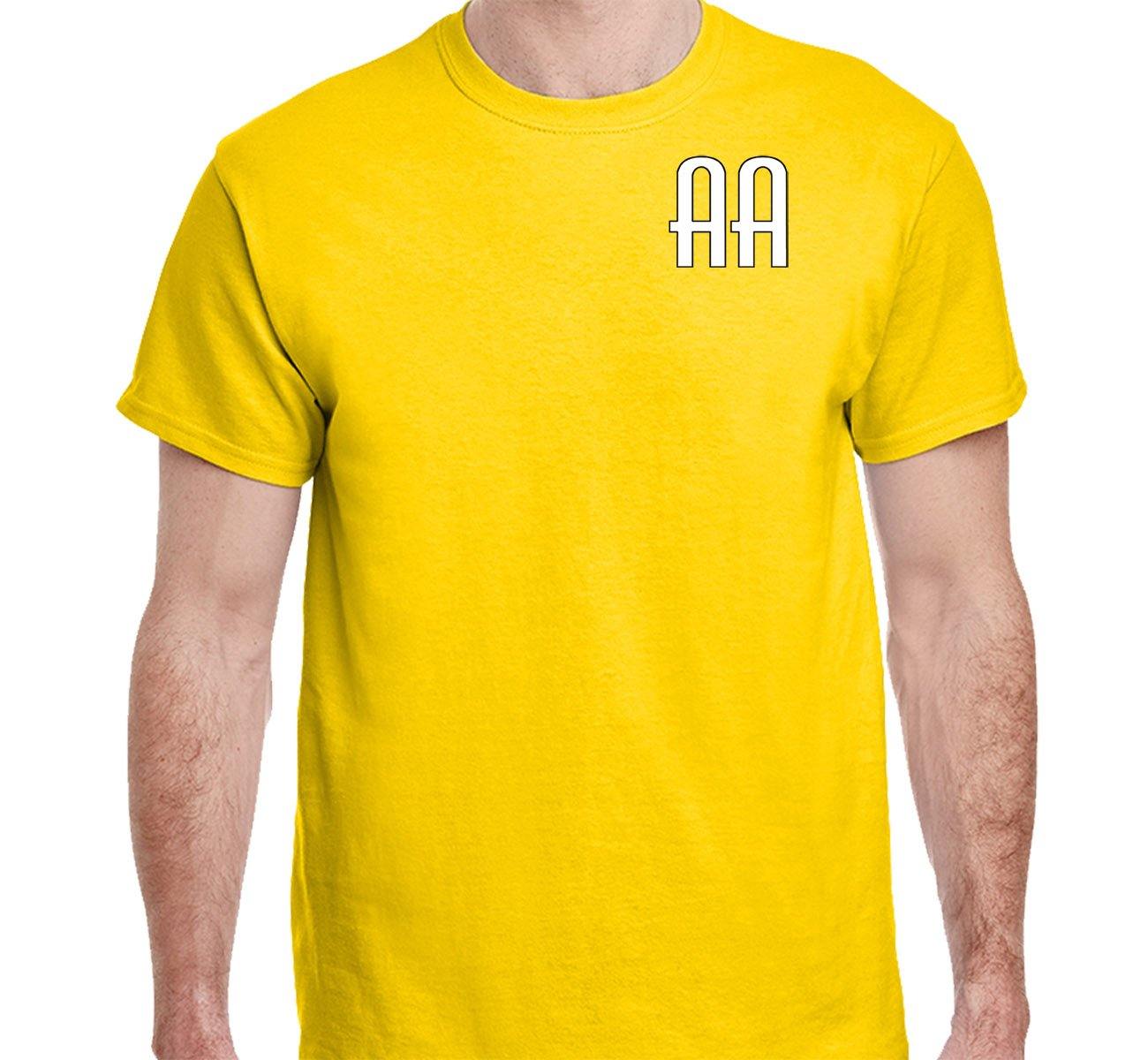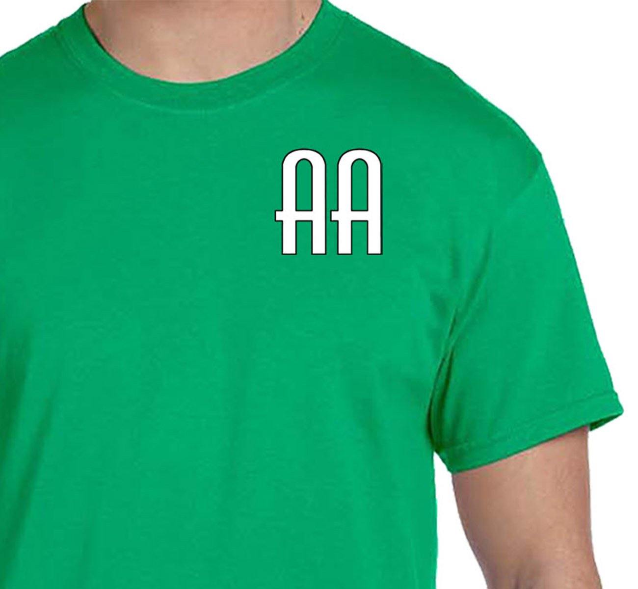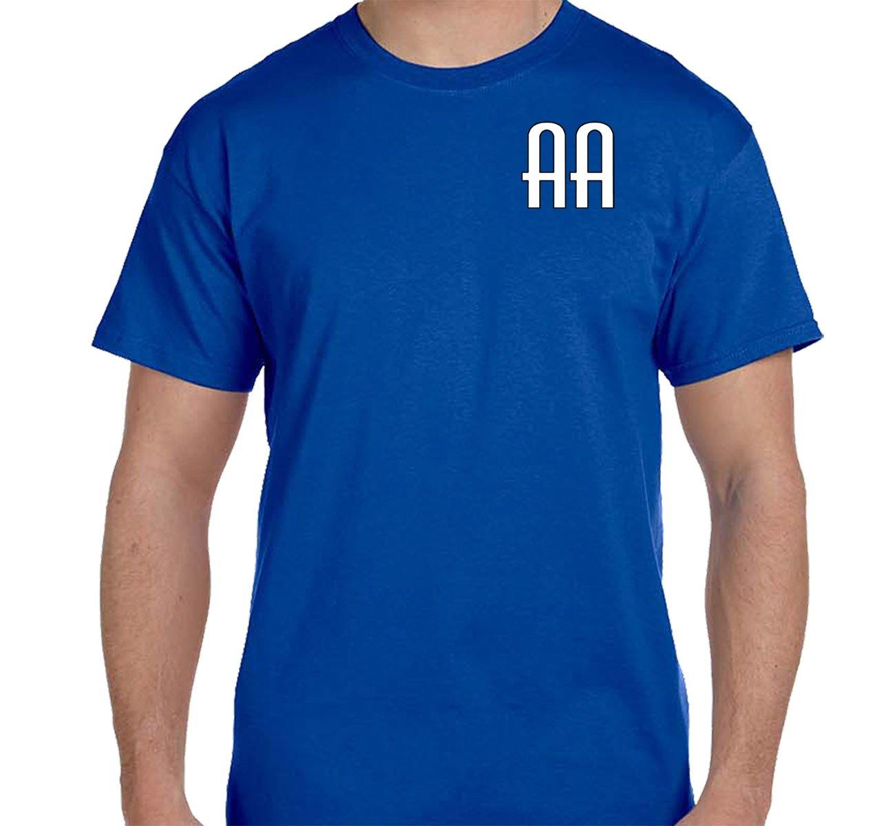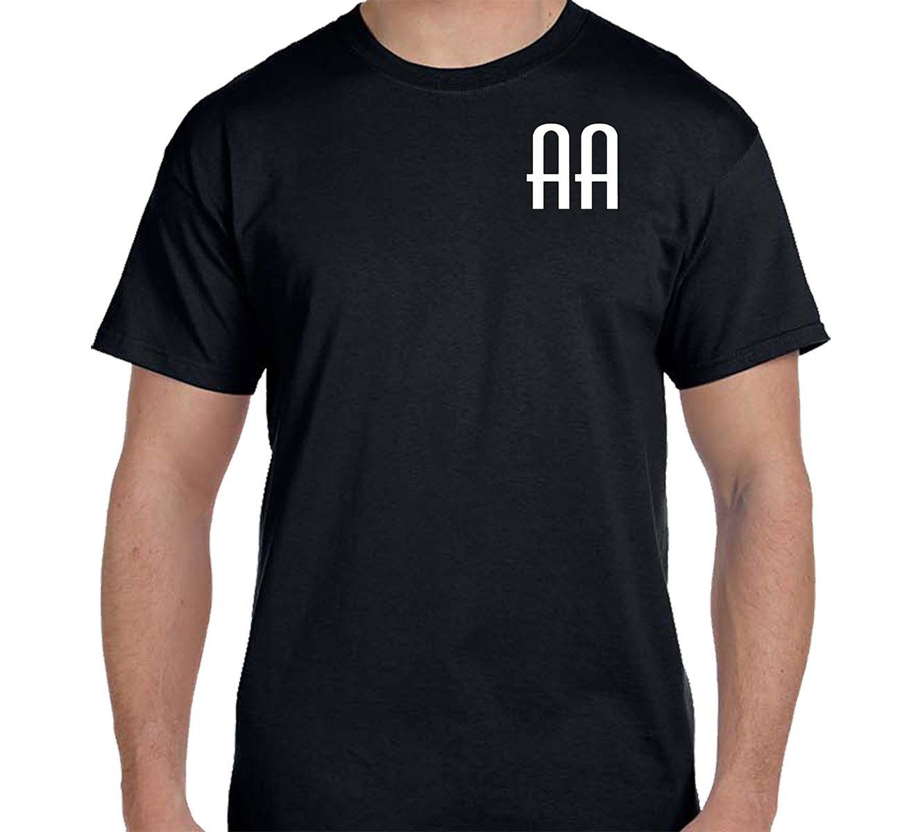 Simple and Sweet, this shirt features a 3 "x 3" AA Initials logo on the front left side. The logo is white with a black outline. A must-have for everyone's recovery wardrobe- this shirt is made of a classic cotton material that is preshrunk and ready to wear!