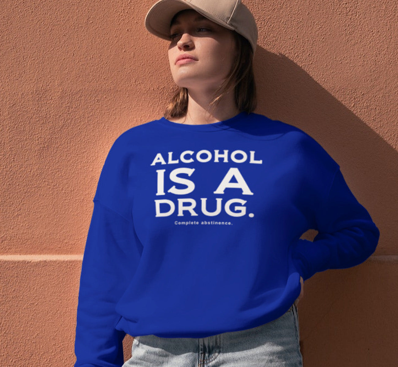 Great shirt. This is another straight-to-the-point design perfect for an NA member who believes in the literature and loves that our program is completely absent from all drugs, including alcohol. The simple words are right out of the NA Basic Text. The 50/50 cotton/poly blend makes this sweatshirt is not only breathable but flexible and durable, as well. With quality, comfort, and style, this sweatshirt features pill-resistant air jet yarn, double-needle stitching, and 1x1 ribbed collar, cuffs and waistband.