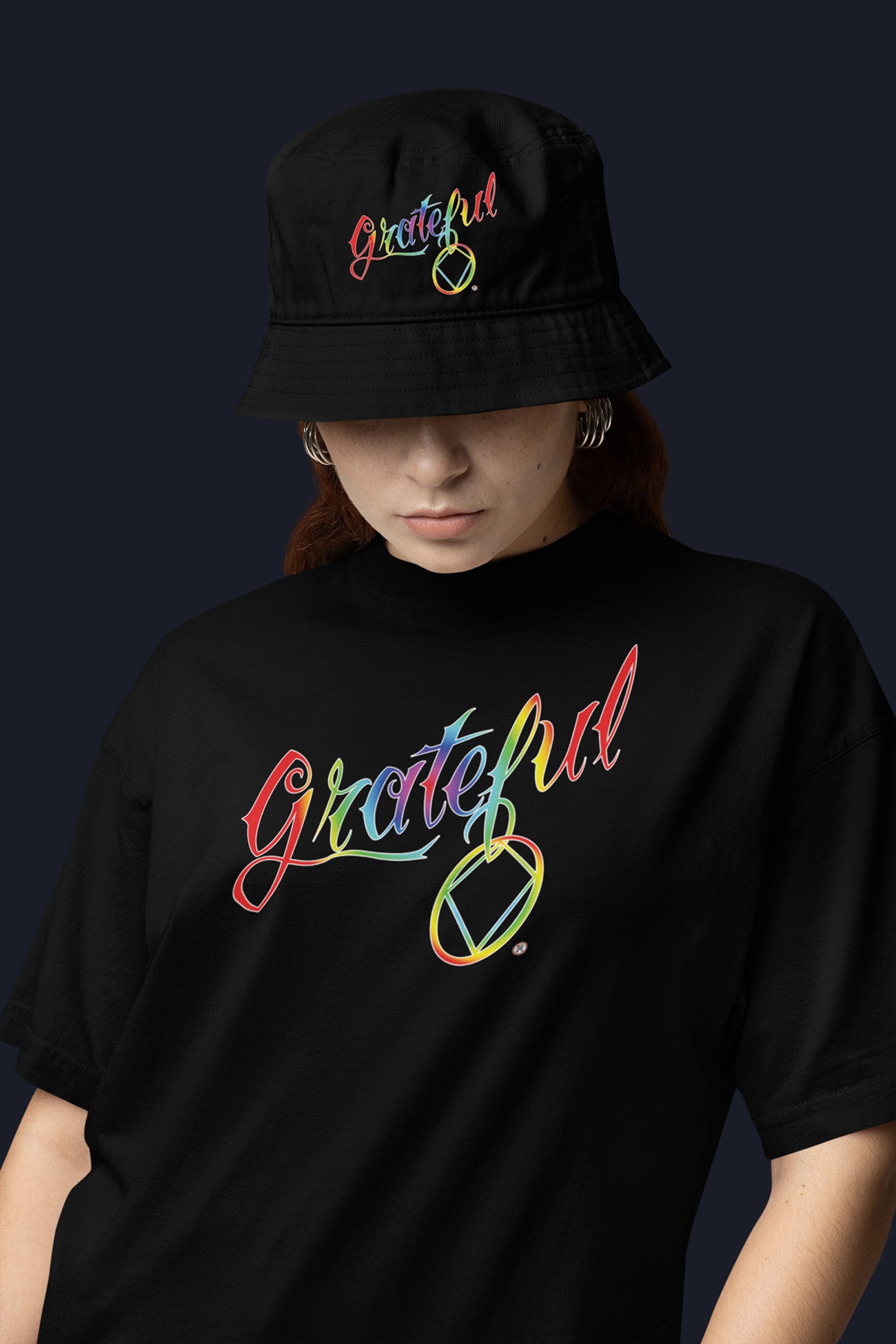 cbh- Grateful Rainbow Bucket Hat - Black is backordered and will ship as soon as it is back in stock.