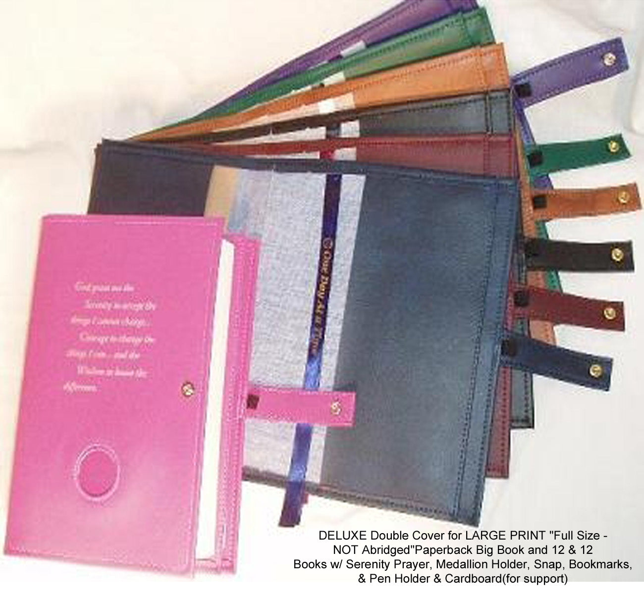 DELUXE Double Cover for LARGE PRINT "Full Size - NOT Abridged "Paperback Big Book and 12 & 12 Books w/ Serenity Prayer, Medallion Holder, Snap, Bookmarks, & Pen Holder & Cardboard (for support)