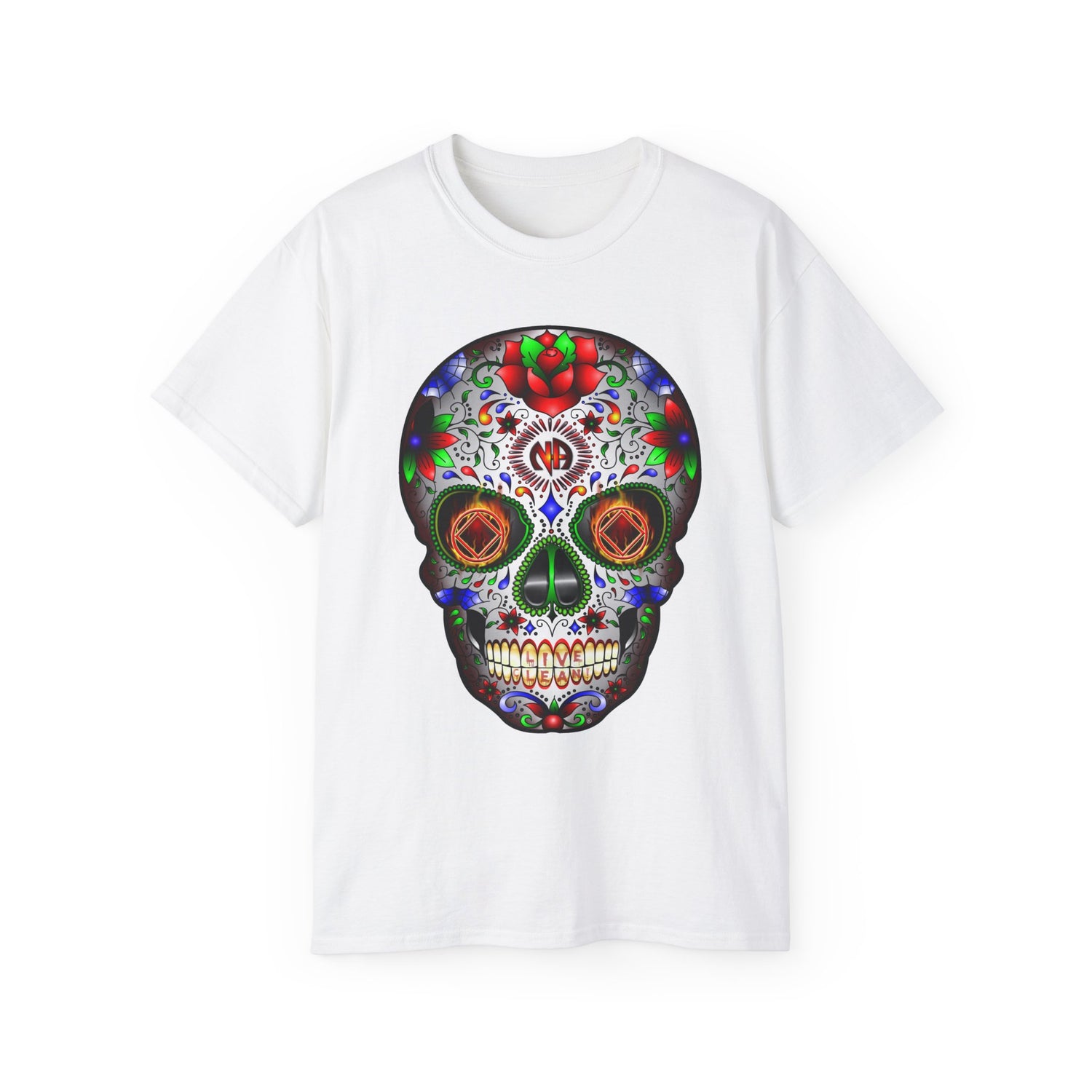 This amazing design is mind-blowing if I say so myself. I spent hours drawing and working on every detail of this design. The color, detail, and size of this design are the way sugar skulls are supposed to be. This is a large image that gets larger as the shirt size increases. I've seen a lot of sugar skull and recovery sugar skull designs out there, and none of them come close to this one. This highly detailed image is produced by a direct-to-garment printing process. The image takes up a large portion of the front side. This heavy cotton tee has the classic cotton look and feel. Casual elegance will make it an instant favorite in every ones recovery wardrobe.