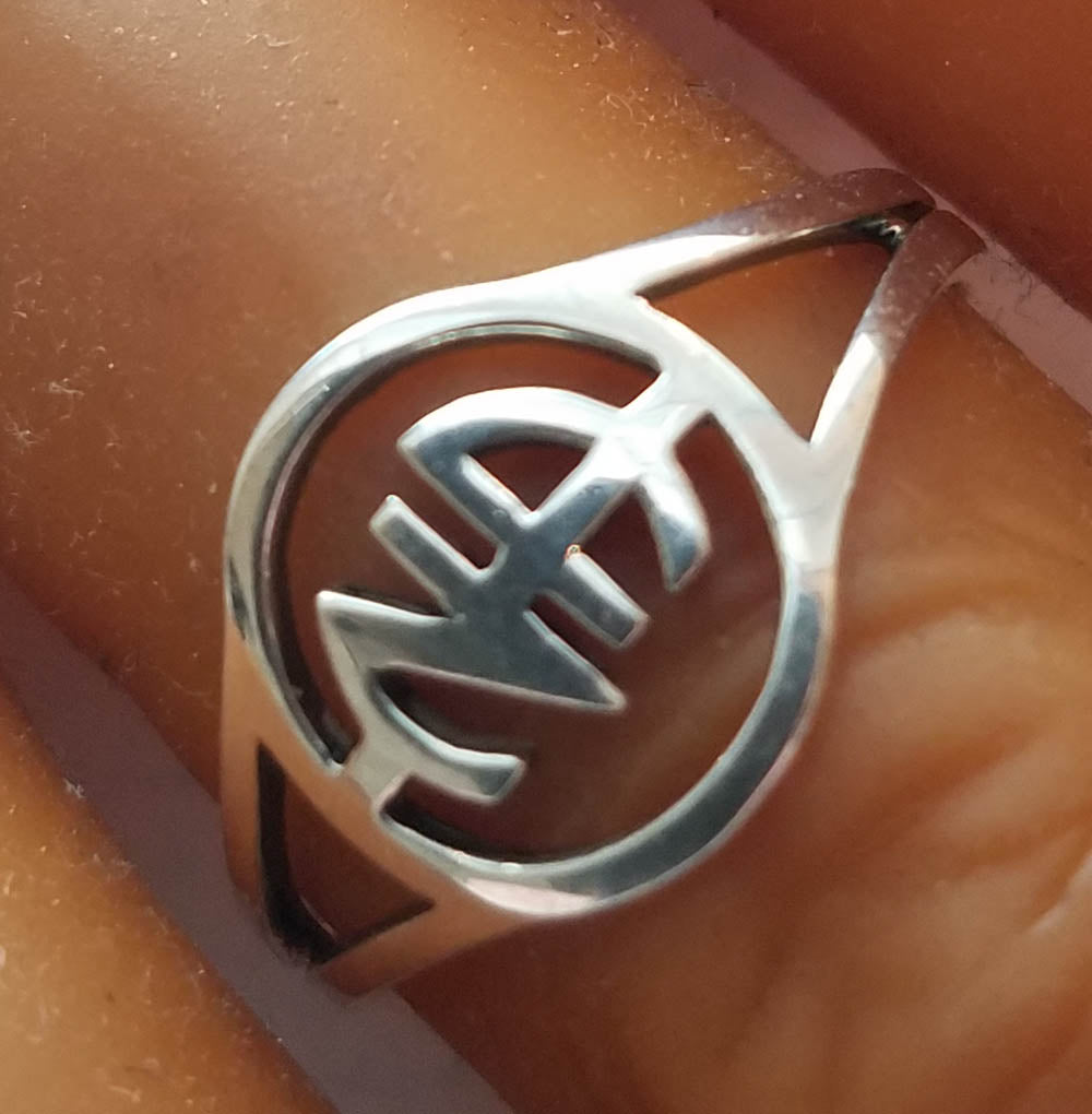 ring02, Sml NA Symbol Ring - 4 / Silver is backordered and will ship as soon as it is back in stock.