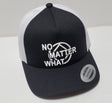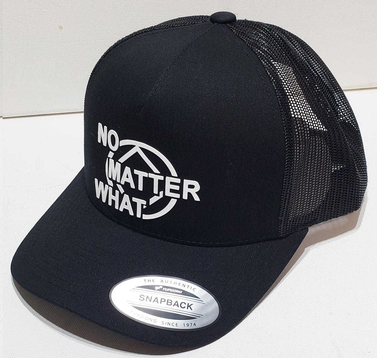 Trucker Cap - No Matter What - Black / White is backordered and will ship as soon as it is back in stock.