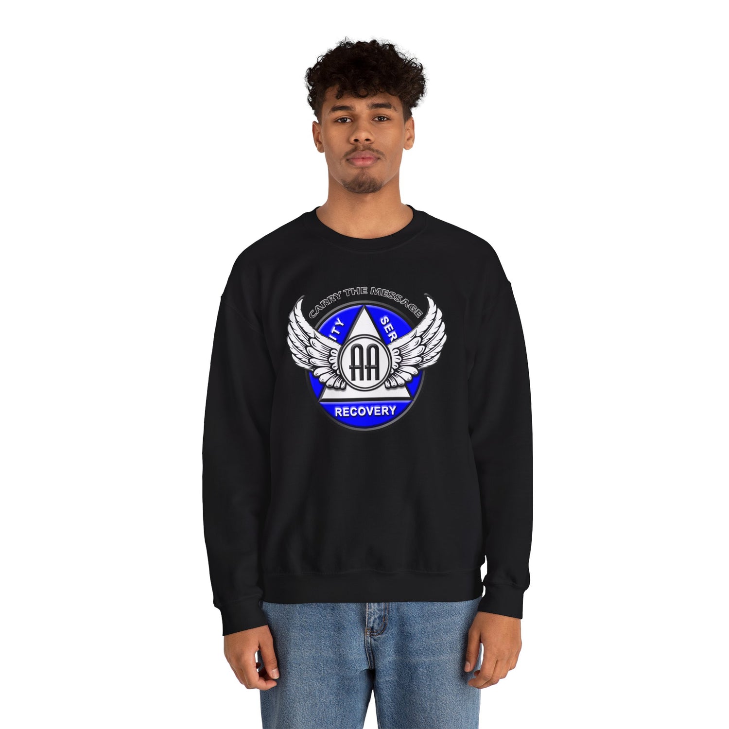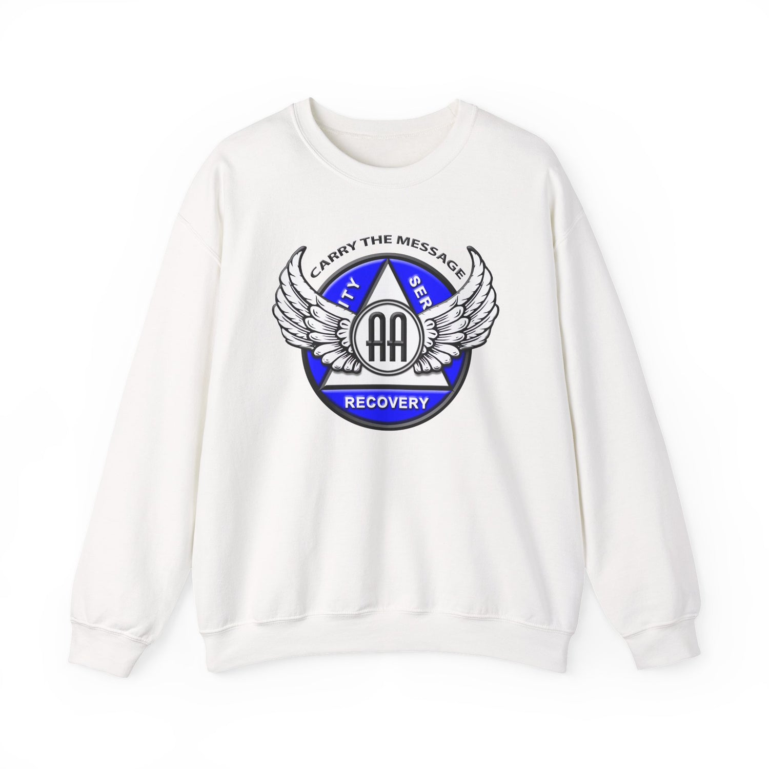 This is a very cool redesign of our Winged AA Symbol design that's become a classic. The image is very crisp, clean, and detailed. We used contrasting colors to make this design bold and stylish. It is so cool that others may not know it is a recovery design. Introducing the perfect companion for those cooler days: a cozy Unisex Heavy Blend™ Crewneck Sweatshirt that effortlessly combines style with comfort. This sweatshirt brings a relaxed yet clean aesthetic, making it an ideal choice for casual outings or lounging at home. With its classic fit and soft fabric blend, it envelops you in a gentle warmth, providing a comforting embrace during chilly evenings. Perfect for anyone looking to express themselves authentically, this versatile sweatshirt is particularly relevant for individuals involved in recovery support and communal gatherings. A thoughtful gift for celebrations such as birthdays or special observances like Recovery Month, it embodies unity, service, and resilience, making it a meaningful addition to one’s wardrobe. Wear it as a reminder of strength and community spirit, or share it with loved ones to foster connection and encouragement.